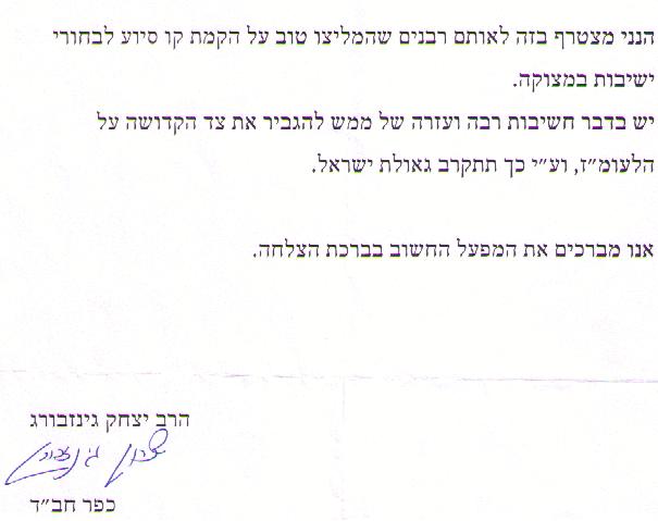 הרב יצחק גינזבורג בירך על פעילותו של מרכז עצת נפש וציין: "הנני מצטרף בזה לאותם רבנים שהמליצו טוב על הקמת קו סיוע לבחורי ישיבות במצוקה."