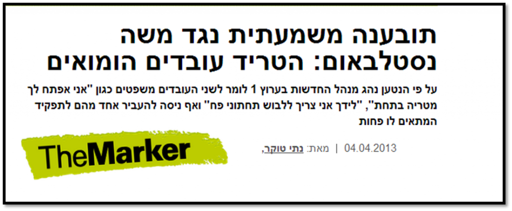 אגף המשמעת בנציבות שירות המדינה הגיש אתמול לבית הדין למשמעת של עובדי המדינה תובענה משמעתית נגד משה נסטלבאום, מנהל חטיבת החדשות בערוץ הראשון.