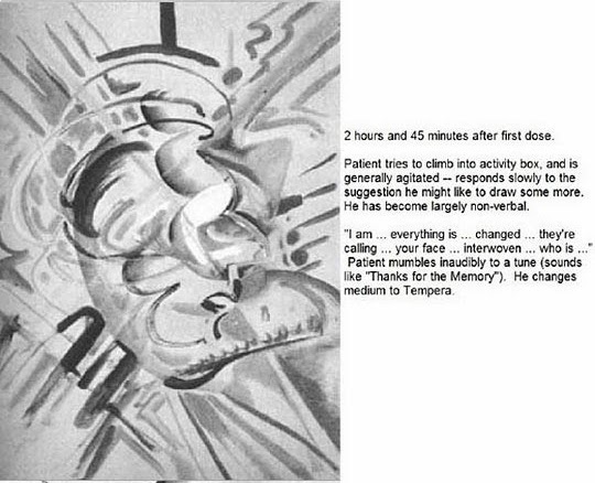 בשנות ה-50 המאוחרות אמן התנדב לקחת חלק בניסוי. הוא נטל מנות קצובות של אסיד וצייר פורטרט עצמי. התוצאה מדהימה ומבהילה בו זמנית. שווה לקרוא גם את התיאור המצורף.