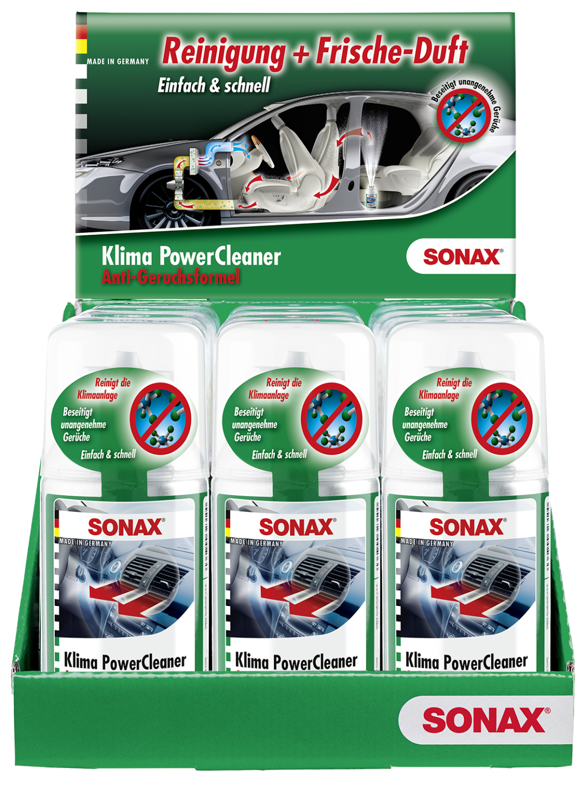 עוד מבית SONAX ישראל פטנט חדש לניקוי מערכות מיזוג האוויר ברכב. בתוך דקות ספורות וללא כל מאמץ תצליחו לנקות לבד את מערכת המיזוג ברכב. המוצר מיועד להפעלה בתוך הרכב כשהוא סגור ומפזר ספריי שחודר למערכת המיזוג, מנקה אותה ביסודיות ומותיר ריח נעים. ניתן למצוא את המוצר בסניפי רשתsolo הממוקמים בתוך עשרות סניפי הום סנטר.