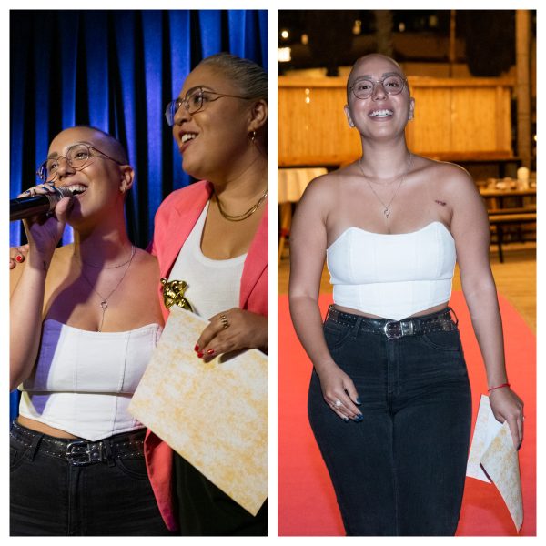 אחרונות ומרגשות היו אילה סלע ומירית גרינברג. הראשונה צעירה בת 28, אמא לתינוק, השנייה, מלכת יופי לשעבר מפורסמת, אמא לשלושה ושתיהן נפגשו במהלך הטיפולים שלהן באיכילוב. לטקס הזה הגיע אילה בידיעה שהיא מעניקה את הפרס למירית אבל מירית בחרה לעשות בדיוק הפוך ולהעניק את הפסלון לאילה. "את עברת איתי הכל. יד ביד. כוח שרק אנחנו נבין. הצחוקים במחלקה וחיבור שהוא ללא מילים. אני גאה בך את הגיבורה שלי והפרס הוא בשבילך," היא אמרה לחברתה המופתעת (ואל תדאגו, גם מירית החזיקה פסלון בסוף). רגע לפני כן סיפרה אילה, נשאית הגן BRCA שאמא שלה נפטרה מהמחלה על המסע שלה "עברתי חתיכת דרך. מילדה ג'ינג'ית עם שיער ארוך עד הטוסיק שהחיצוניות תמיד הגדירה אותה ופחדה פחד מוות מהשינויים לפני שהיא פחדה מהמוות עצמו, הפכתי לאישה, אישה שנחושה לאהוב את עצמה ומוכנה לעבוד קשה. עבדתי קשה והתחלתי לדבר אל עצמי כמו שמגיע לי. למדתי איך איילה מסתדרת בלי המראה שלה.ולא רק שאני יכולה להתקיים בלעדיו, אני יכולה להיות נהדרת. כי אני באמת נהדרת. בדיוק כמו שאני."