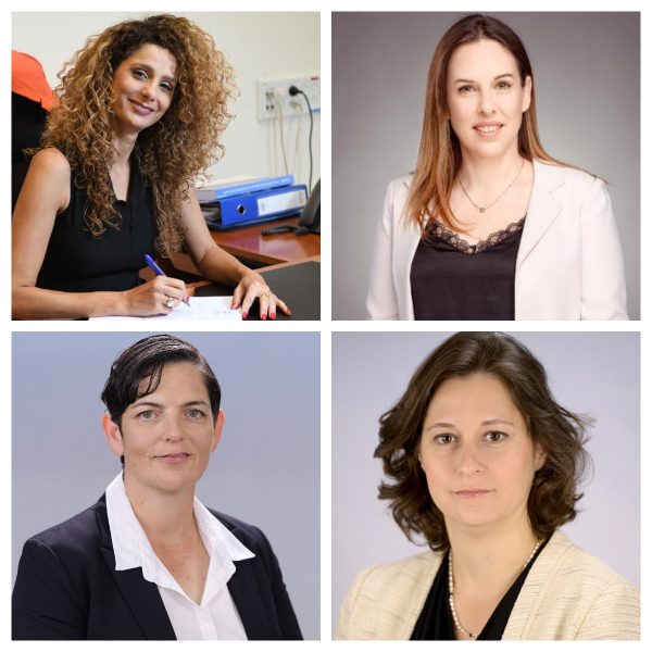 מימין למעלה שי-לי שפיגלמן, מנכ"לית משרד המדע והטכנולוגיה (צילום: דורון לאטצר), לירן אבישר בן חורין (צילום רפי קוץ), מנכ"לית משרד התקשורת, למטה: יעל מבורך (צילום לע"מ) מנכ"לית המשרד לשוויון חברתי וסיגל יעקובי האפטרופוס הכללי וממלאת מקום מנכ"לית משרד המשפטים