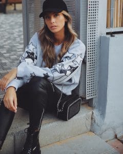 בקולקציה שולט מראה אופנת הרחוב בלוק קליל ונוח. סריגים באוברסייז ותמיד עם איזה אלמנט נוסף כמו כוכבים, פסים או סרטים צבעוניים בצבעי הניאון. מעילים רחבים דמויי עור מעוטרים בפרווה צהובה, ג'קטים מבריקים מבד ניילון, נעלי פלטפורמה או מגפוני ניטים.