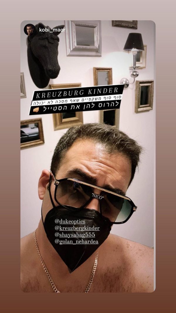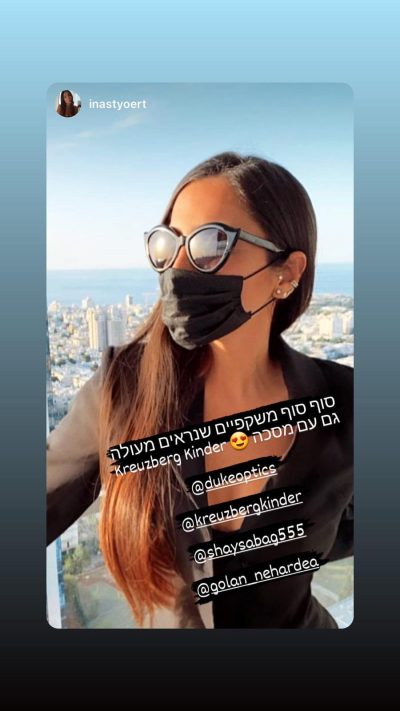 ולכן כשספרו לי על מיזם עידוד חבישת מסכות, התגייסתי למשימה. ולא רק אני, גם הסלבס וגם מותג המשקפיים "קרויצברג קינדר", מותג  צעיר חצוף ומעז, כזה שלא עושה חשבון ומסתכל לנו בגובה העיניים. המותג מציג קולקציות של משקפי שמש שבא לכם לרכוש את כולם. המותג יושב בברלין ומוכר בכל העולם, אבל יש להם מקום חם בלב לישראל היות וגילי שני הוא ישראלי, הוא חלק מצוות העיצוב של המותג, והוא גם הצלם הבלעדי של המותג. רק בשביל הפיקנטריה, את הצילומי הקמפיין הם נוהגים לעשות עם אנשים מהרחוב, אותם הם מזמינים להפנינג ודרינקים, לצילומי אווירה. אנשים כמוני וכמוכם. מותג מדליק כבר אמרתי?