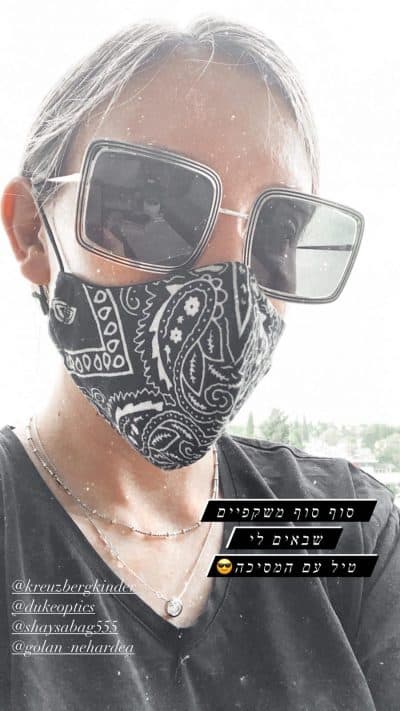 הצילומים מוכיחים שלמרות המסכה על הפנים, היא יכולה להשתלב נהדר עם המשקפים הנכונים והאופנתיים ולהציג מראה חדש ומקורי לזמן הקורונה. אופנה חדשה של  "משקפיים ומסכה".