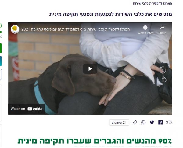 גיוס המונים לטובת הכשרת כלבי שירות לנשים נפגעות פוסט טראומה מינית בלינק הבא. כל סכום שייאסף ייתרם לטובת המטרה.