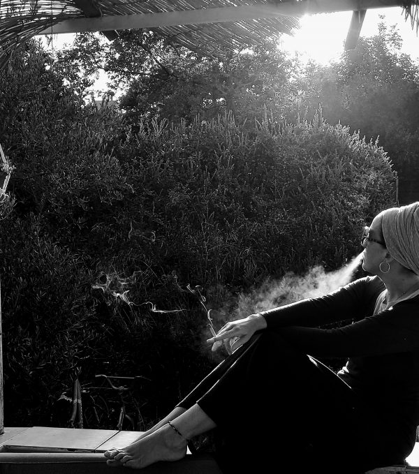רבקי מהקומה הראשונה יוצאת לזרוק את הזבל, אני נצמדת לארון, מורידה את הסיגריה שלא תראה את הגחלילית הבוערת בקצה. רק זה חסר לי עכשיו, שהיא תרים את הראש למעלה, הבנות שלנו ביחד בגן החרדי והיא בטוח תלשין...