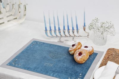 המעצבת זיוי בן חיים בעלת מותג הבוטיק הישראלי, BcH, משיקה פלייסמנט בעבודת יד עם סמלי החג. פלייסמנט בחיתוך לייזר, עשוי בד קטיפה איכותי בשילוב בד משי ומעוצב בסגנון הייחודי של המעצבת, המשלבת בין חדש וישן בהרמוניה. הפלייסמנט לחנוכה עמיד בכביסה ומתנקה בקלות ומגיע בצבעוניות של כחול, תכלת, שחור או צהוב.