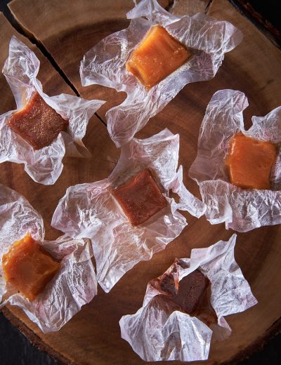 מיקס סוכריות טופי קרמל רך המיוצרות בעבודת יד, מגיעות עטופות אחת אחת. הסוכריות מכילות פרי אמיתי ללא חומרים משמרים וצבעי מאכל. מחיר: 50 ₪ למאה גרם.