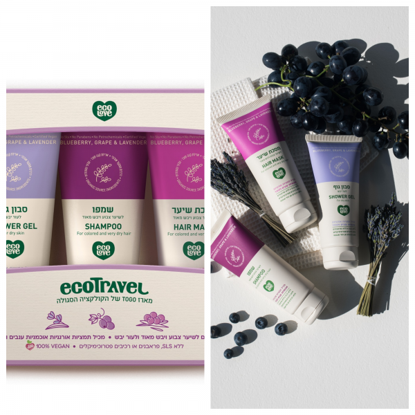 מותג הטיפוח הטבעי ecoLove משיק לראשונה מארז נסיעות ecoTravel TOGO, הכולל 3 מוצרי טיפוח טבעיים: שמפו לשיער יבש וצבוע, מסכת שיער לשיער יבש וצבוע, וסבון גוף לעור יבש.