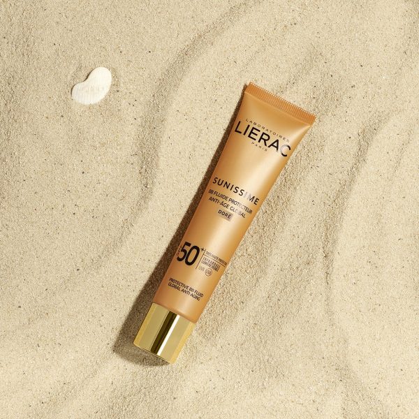 ג'ל טיפולי לאיזון העור של "ליראק פריז" ו-SUNISSIME קרם הגנה מהשמש בגוון זהב