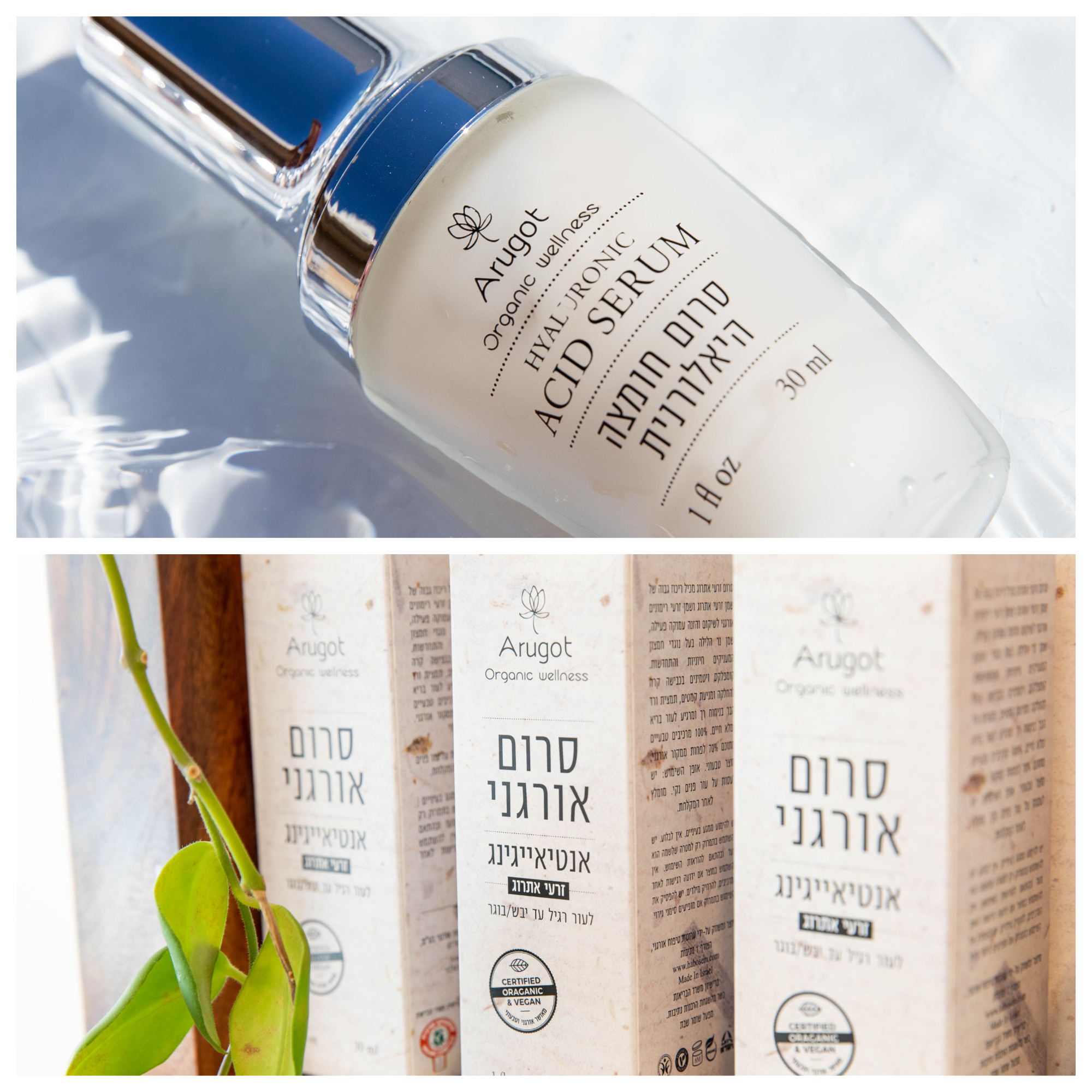 סרום חומצה היאלורנית אנטי אייג'ינג הוא סרום עשיר ופעיל לפנים ולצוואר, המכיל חומצה היאלורנית, קולגן, שמנים ותמציות צמחיות פעילות כמו שמן חוחובה ושמן רוז היפ המסייעים בחידוש תאים ופעילות אנטי אוקסידנטית, ותמציות אלוורה וקמומיל להרגעת העור, העלמת קמטים וקמטוטים, והענקה לעור מראה מוצק וחלק. מומלץ לעור יבש, בוגר, וחסר חיוניות.