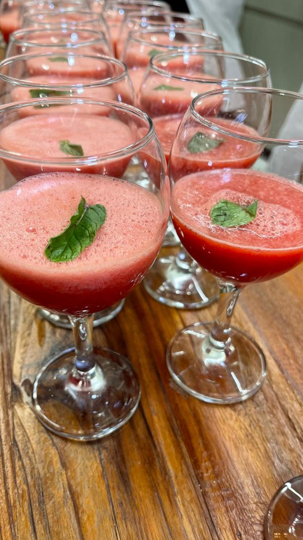 מכניסים את כל המצרכים לבלנדר וטוחנים עד שמתקבל משקה חלק ללא גושים. טועמים ואם יש צורך מוסיפים סוכר או לימון. מוזגים לכוסות על רגל, מקשטים בנענע ומגישים קר.