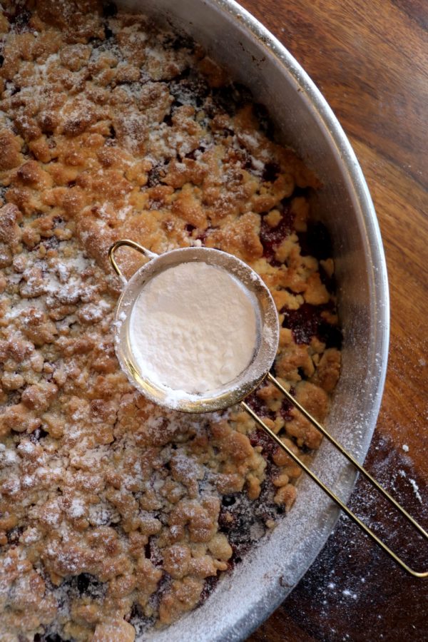 במעבד מזון עם להב משוננת מכניסים את כל חומרי הקראמבל ומעבדים בפולסים עד שמתקבל בצק פירורי. מעבירים לכלי ושומרים בצד. באותו מעבד מחליפים לדיסקית פריסה ופורסים את התפוחים לפרוסות. משמנים את התבנית במעט חמאה, מסדרים את פרוסות התפוחים בשכבה אחידה בתבנית. מזליפים מיץ לימון, מפזרים מעל את האוכמניות, הסוכר, הקינמון וזילופים של דבש בזרם דק. מפוררים את בצק הקראמבל מעל בשכבה אחידה ואופים בתנור 190 מעלות כ35 דקות עד שהקראמבל מזהיב ומוכן.
