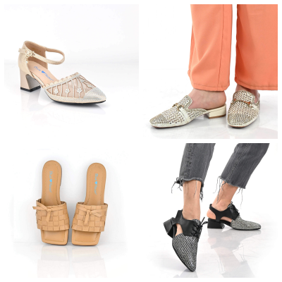 למי שמעדיפה כפכפים על סנדלים, המגוון רחב. לצד כפכפים שטוחים, תוכלו למצוא כפכפים עם מנעד של עקבים לבחירה, כמו עקבי בלוק או ועקבים מתרחבים בגובה בינוני. והכל בצבעי פסטל של תכלת, צהוב, ניוד, ופרחוני.