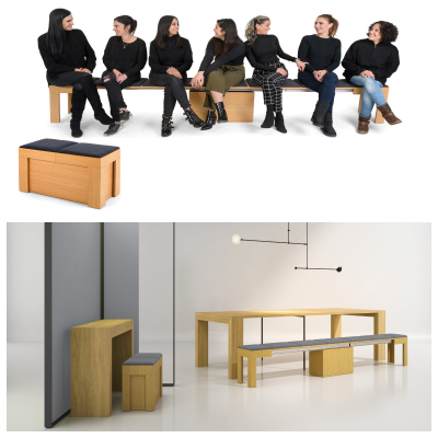 בחלל של "זגה" ראיתי מגוון רחב של אפשרויות, שולחנות פינת אוכל שנפתחים לכל גודל שאתם צריכים, ולא רק, אפשר לצרף להם כסאות תואמים, והשוס הם הספסלים שנפתחים לאורכים גדולים ומכילים מספר רב של יושבים. בסוף הארוחה מחזירים הכול לגודלו הראשוני, וחסל סדר פסח. כהלכתו כמובן.