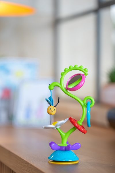 הדבורה המעופפת מיועדת לכיסא האוכל. חלקו התחתון של הצעצוע נדבק באופן חזק ויציב באמצעות ואקום לשולחן הכיסא. הצעצוע כולל צבעים רבים, פרינטים וטקסטורות המושכים את עין התינוק, חלקים מסתובבים מהנים, כך שהצעצוע גם מעסיק את התינוק וגם מעודד את התפתחותו הקוגניטיבית ופיתוח מוטוריקה עדינה.