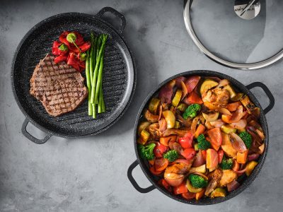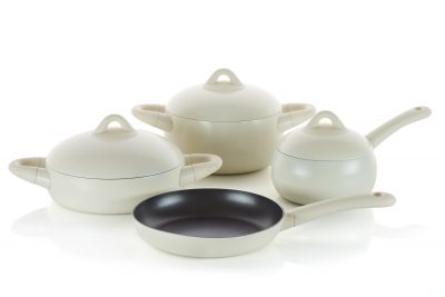 ללא PFOA, קדמיום, או עופרת. כלים המאפשרים חלוקת חום שווה ויעילה החוסכת בזמן הבישול ובאנרגיה. מכסה הסירים גבוה ומעוגל, מה שמגדיל את נפח תכולתם. הידיות עשויות בקליט, חומר מבודד תרמי, ארגונומיות, רכות, נעימות למגע ונוחות. הכלים כולם קלים לניקוי בשטיפה ידנית ומתאימים לשימוש בכל סוגי הכיריים לרבות אינדוקציה. טווח המחירים: 400-115 שקלים לפריט.SOLTAM – להשיג בחנויות הרשת ובאתר www.Soltam.co.il