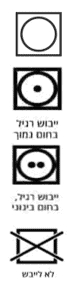 משולשים, יופיעו על בגדים בצבע לבן ומתייחסים לחומרי ההלבנה שניתן או לא ניתן להוסיף למכונת הכביסה שלכם.