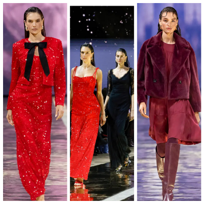 בתצוגה כיכבו גם שמלות ערב ושמלות צמודות עשויות בדים נוצצים ואלמנטים שקופים, הפינאלה שסגר את האירוע חשף שמלה רצפתית משובצת פאייטים.