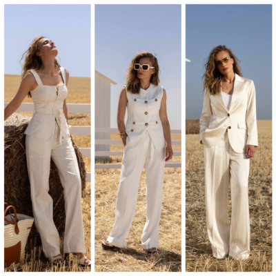 הקולקציה כוללת שמלת קרושה לבנה באורך מידי, שמלת ג'ינס נוחה ליום יום, גופיית תחרה רומנטית, חליפות מחויטות קלאסיות המתאימות לעונה, חולצת טי שרט מבד סלאב על זמני, אוברול ג'ינס קצר בגזרה מדויקת, מכנסיים ג'ינס בגזרה טרנדית, חולצת פסים,ז'קטים במבחר גווני הלבן ועוד.
