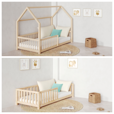 מיטת מעבר ו/או מיטת יחיד, ומיטה וחצי נמוכות המאפשרות לילדים עלייה עצמאית למיטה. סט יצירה ושני כסאות בגימורים עגולים, קומפקטי וניתן לאחסון בקלות בזכות היכולת של הכיסאות להיכנס מתחת לשולחן באופן סימטרי. את הכיסאות ניתן לשים בשני מצבים המשפיעים על גובה הכיסא. מגדל למידה, המעודד אצל הילדים את הרצון לקחת חלק ולעזור להורים במטבח, בעל 3 שלבי גובה על מנת להתאים להתפתחות הילדים.