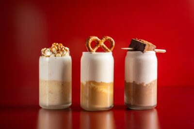SALTY COFFEE - שייק וניל, רוטב בייגלה מלוח, אספרסו, חלב רימילק, גלידת וניל טבעונית ובייגל ענק. ICE POP Brulé - שייק וניל, פופקורן קרמל מלוח, צ’אנקים של פופקורן וניל, גלידת וניל טבעונית, חלב רימילק וקונוס פופקורן מתוק עם לוטוס. ושייק  Truffle Waffle - שייק וניל, וופל לואקר שוקולד, גלידת וניל טבעונית, חלב רימילק וטראפלס שוקולד עשיר.
