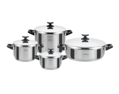 הכלים מבוססים על נירוסטה אל חלד איכותית, הנחשבת לאחד מחומרי הגלם האמינים והבטוחים ביותר לבישול. הנירוסטה אינה נקבובית, אינה סופגת ריחות, צבעים או טעמים, ואינה מגיבה עם מזון חומצי או מלוח, ולכן שומרת על היגיינה גבוהה ועל איכות המזון לאורך זמן. החומר עמיד במיוחד בפני חלודה, שריטות ועיוותים מחום, שומר על מראה מבריק גם לאחר שימוש ממושך, ומאפשר ניקוי קל ויעיל במדיח או ידנית. הסדרה עומדת בתקני בטיחות למזון ומתאימה לשימוש אינטנסיבי במטבח הביתי לאורך שנים.